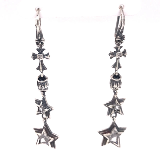 Silver Earhanger adorned with sprouts and featuring white, red, and black zirkonia stars, complete with an elegant ear hook.