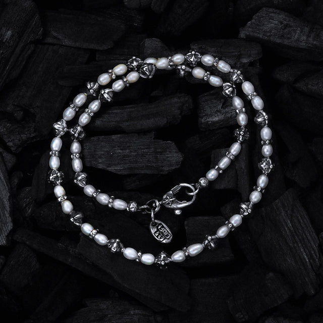 Silver and Pearls Necklace with Small Silver Crossballs 6