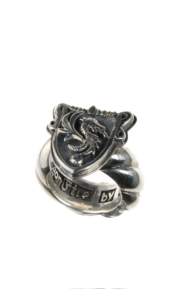 Silver Ring DRAGON FIRE Shield with Spiral Band