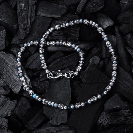 From €39500Unit price /UnavailableSilver and Pearls Necklace with Triple Small SKULLS 5
