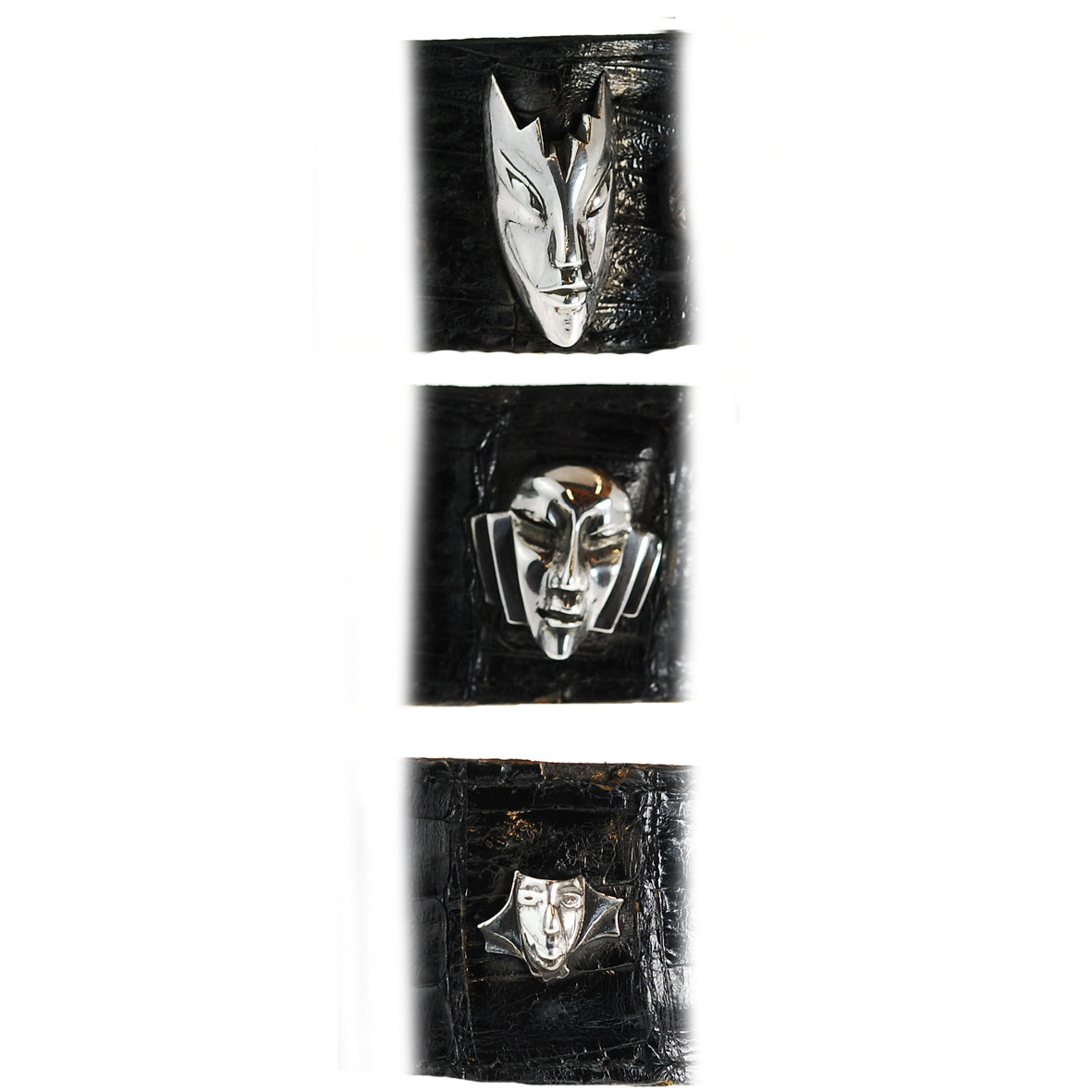 Silver Beltset CARNIVAL in VENICE with Black Croco Strap