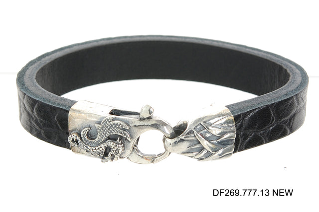 Silver-Leather Bracelet Lobster Claw DRAGON FIRE 13