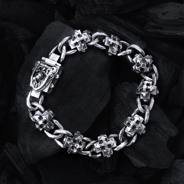 Silver Bracelet Greek Blades Crosses and Faceted Chain with Shield Boxlock 12