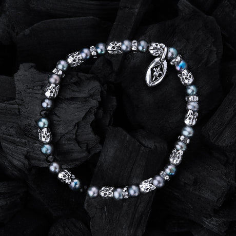 - Silver Bracelet with Triple Mini SKULLS and genuine Pearls on Rubber 5 €25900Unit price /Unavailable