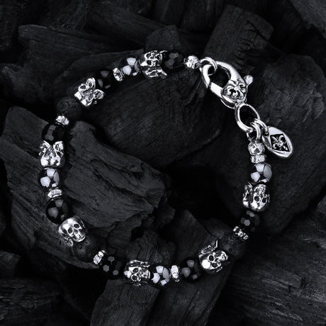 - Silver Bracelet with Triple Small SKULLS and Beads or Pearls 8 €29800Unit price /Unavailable