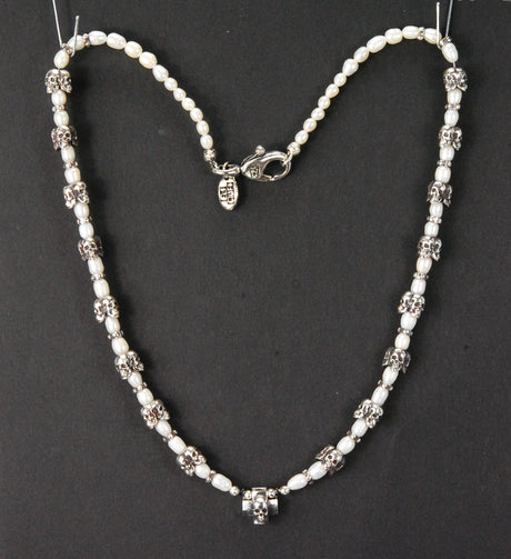 - Silver and Pearls Necklace with Triple Small SKULLS 8 From €39900Unit price /Unavailable