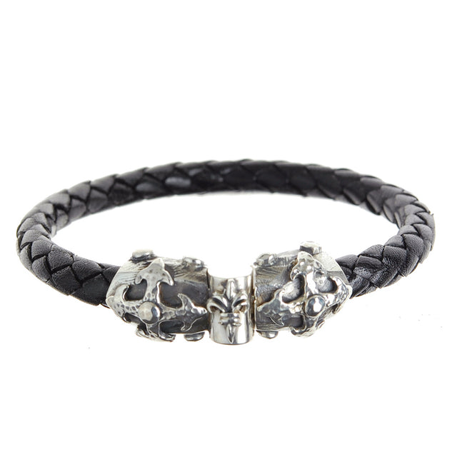Blades Cross's Silver-Leather Bracelet glistens with an ornate, mid-age flair; the faceted Silver Jointlock pairs with the 7 mm oval braided or croco embossed leather for a luxurious unity.