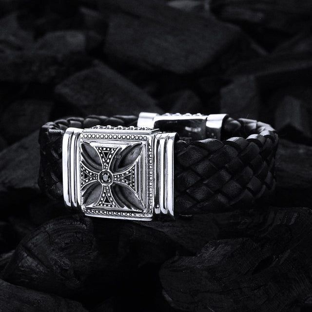 Sophisticated and exclusive, our Silver Leather Bracelet MALTESER CROSS combines royal inspiration with a touch of timeless elegance. The Elfin Lily box lock adds a touch of enchantment to the braided leather, creating a truly luxurious accessory.