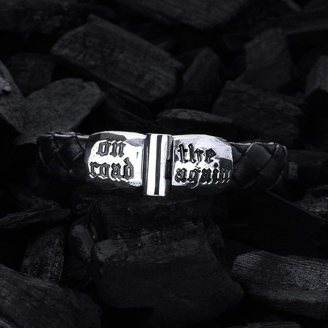 Silver-Leather Bracelet ON THE ROAD AGAIN Faceted Jointlock 13