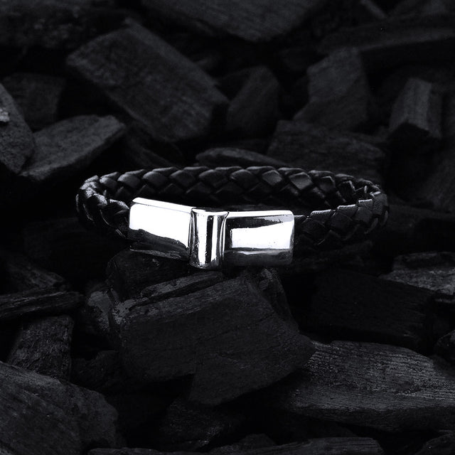 Silver Leather Bracelet PLAIN Jointlock 10