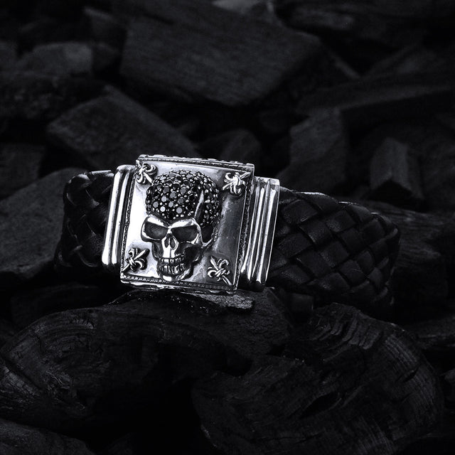 Wrap your wrist in bold rebellion with this 22mm leather braid bracelet, crowned by an audacious silver box clasp featuring meteorite-inspired morning star accents. The SKULL and Lilies design merges dark mystique with delicate beauty—a striking statement piece for those who dare to blend danger and elegance.