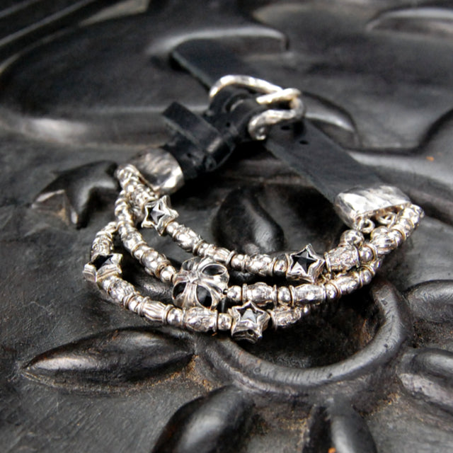 Silver Leather Bracelet Tubes and Stars MALTESER CROSS 15