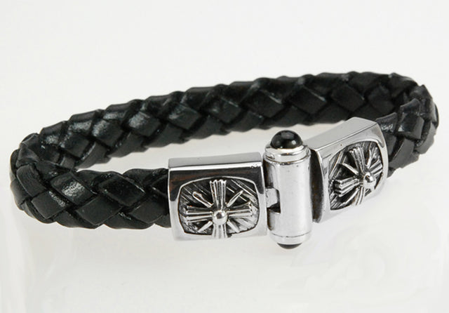Mid age style silver Jointlock with Morning Star and 10mm oval braided leather or embossed black Croco