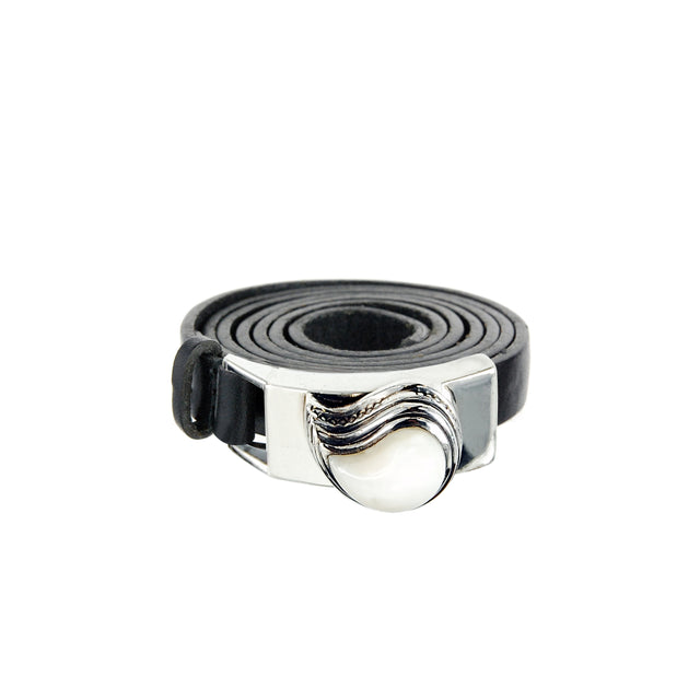 Silver Paisley lock with Mother of Pearl and black leather 70cm