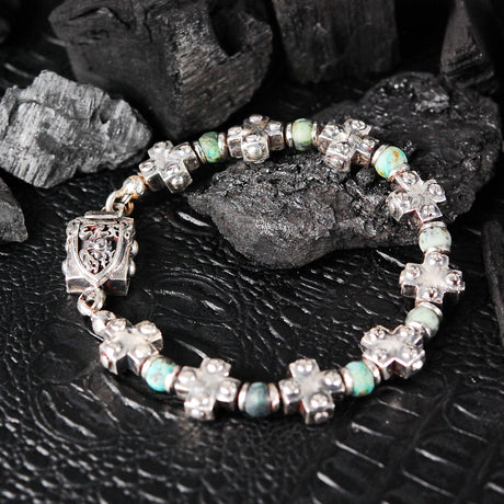€000Unit price /UnavailableSilver Bracelet Beads and GREEK CROSSES Row with Shield Lock