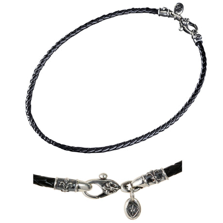 Silver Leather NECKBAND PLAIN M and Silver Carabiner