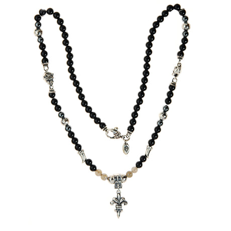 Halskette aus Perlen und facettierten silbernen BLADES CROSS Kugeln
