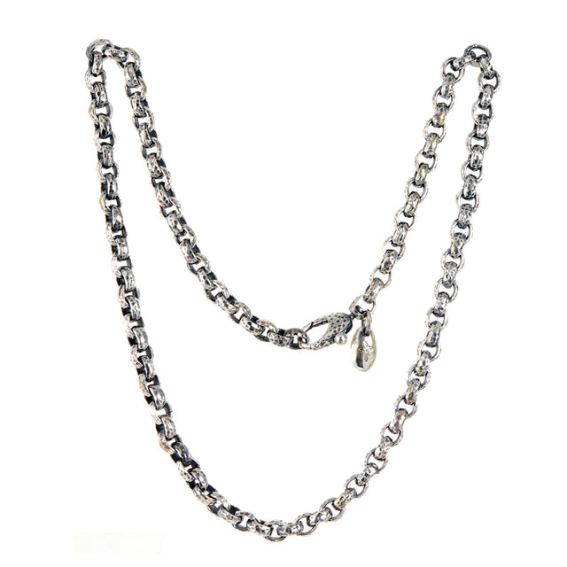 This luxurious silver neckchain showcases a timelessly-elegant XS Carabiner and XS Hammered PEA's Chain.