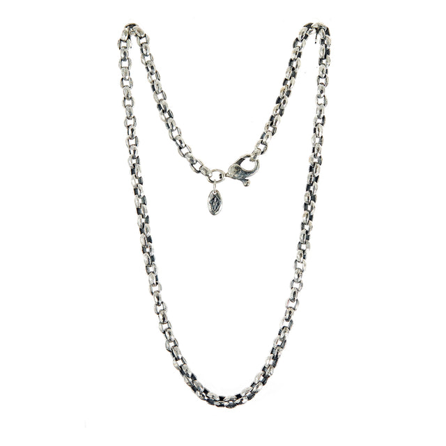 This handcrafted Silver Neckchain PEA s Chain S features a rough faceted finish, secured with a carabiner for added convenience.