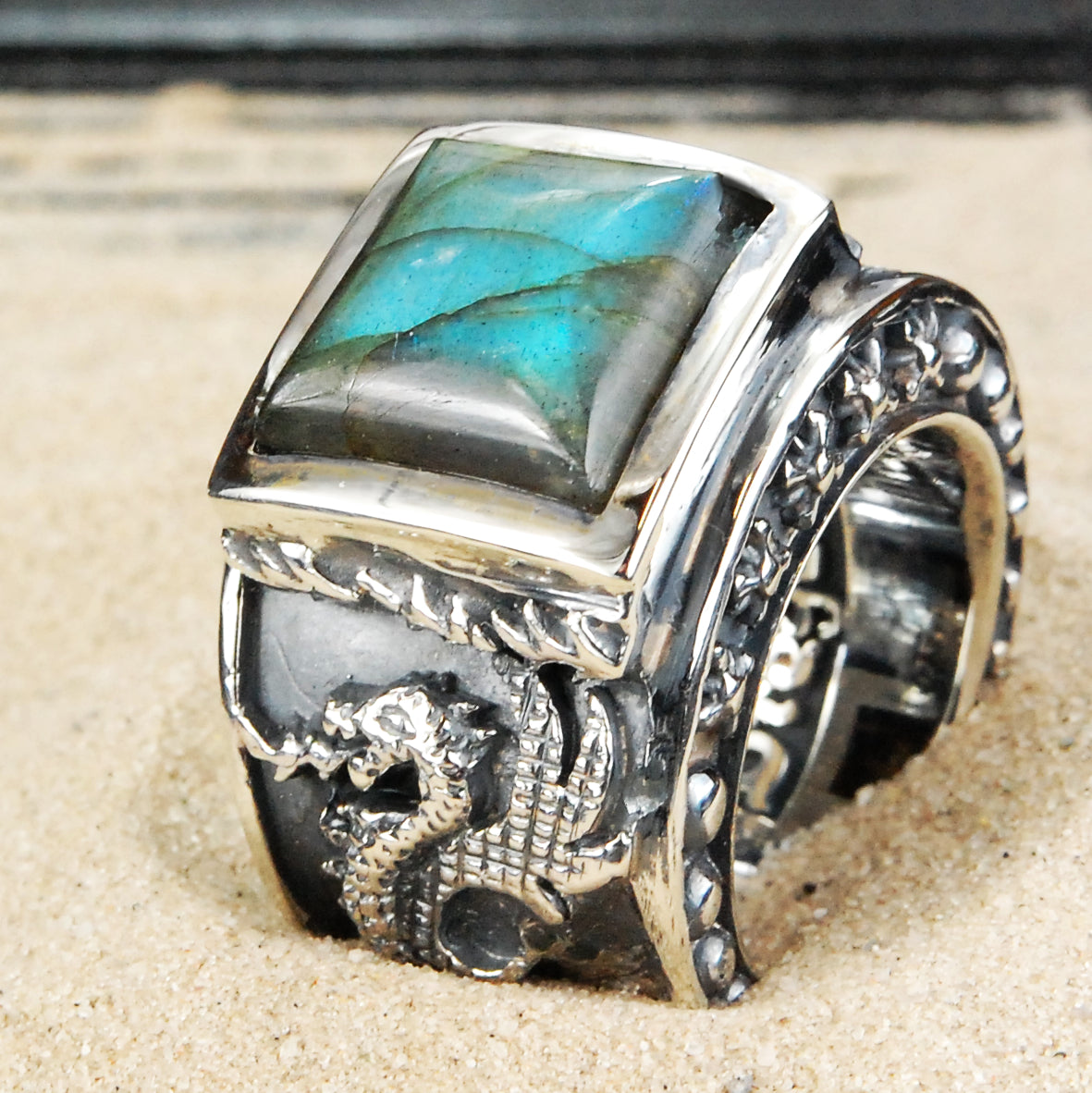 From €39500Unit price /UnavailableSilver Ring DRAGON SCALES Band with DRAGON CLAW Stoneholder