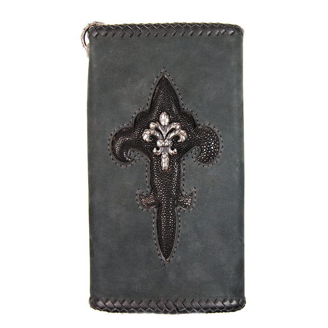 Leather Clutch Wallet with Searay Lily and Silver Lily