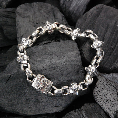 €24800€49800Unit price /UnavailableSilver Bracelet SKULL s with Halflinks chain and a SHIELD Boxlock