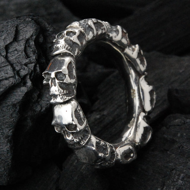 Silver Ring SMALL SKULLS ROW Thumbs Ring