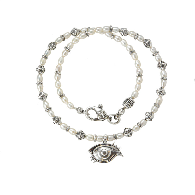Silver Cross Balls Necklace with Pearls or Beads + The Third EYE Cares + black Diamonds