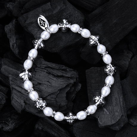 €19800Unit price /UnavailableSilver Bracelet with 8 mm Cross Balls plus Pearls on Rubber