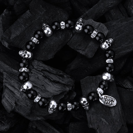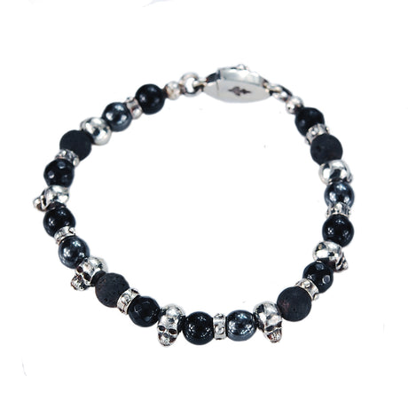 €25900Unit price /UnavailableSilver Bracelet with Triple Small SKULLS and Beads or Pearls 8