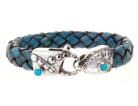 €29800Unit price /UnavailableSilver-Leather Bracelet LOBSTER CLAW Hammered with Dots and Turquoise 13