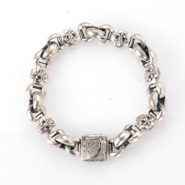 Silver Bracelet LILY CROSSES + SHIELD BOX LOCK on PEA Chain