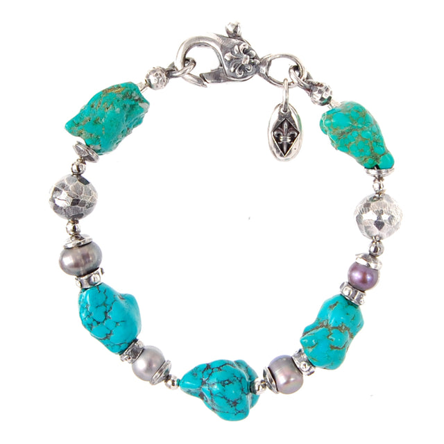 Armband aus Silber und Perlen FELSEN und FELSEN und schwarze Perlen