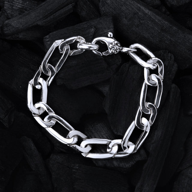Silver Bracelet FIGARO Chain Faceted with Lily Carabiner 14