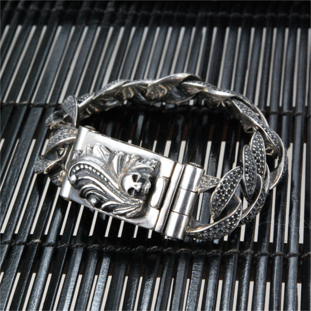 Silver Bracelet MAGIC PLANT with Skull and Royal Chain M