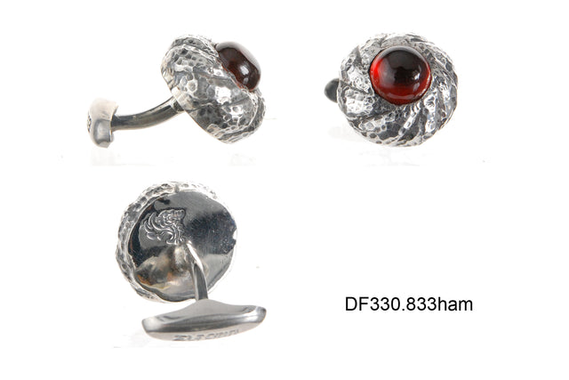 18-mm-Manschettenknöpfe aus Silber mit einer perfekt gearbeiteten gehämmerten Spirale in der Mitte und einem luxuriösen Granat-Cabochon bilden ein wirklich raffiniertes und exklusives Accessoire.