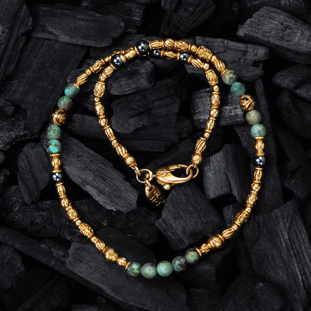 Elfin´style symbols on mini Tubes and mini balls 5 micron Gold plated Tubes size 7 x 5 mm made from sterling silver. In between different stone beads and a silver MALTESER CROSS on both sides.. Slim, but with weight. Wonderful to wear.