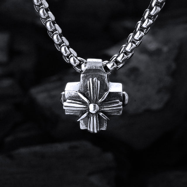 Silberner Anhänger griechisches Kreuz mit Loch und MORGENSTERN 16