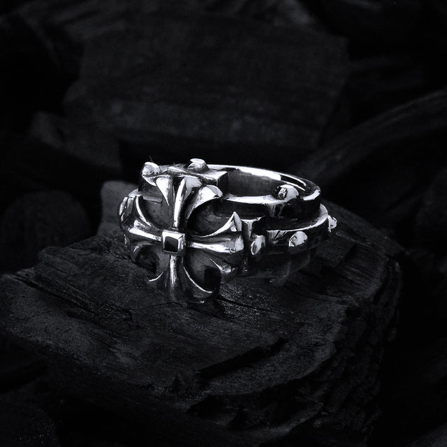 Silver Ring Greek MALTESER Cross on Faceted Rivet Band