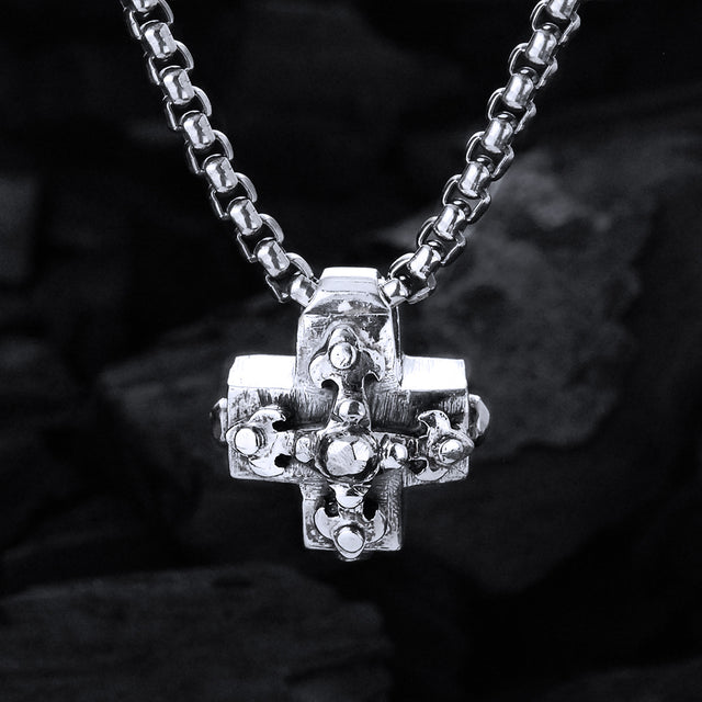This exquisite body, rising to a height of 20 mm, is adorned with a hole for conveniently attaching a necklace chain or leather band, and is encircled by a luminescent BLADES CROSS with its sparkling gemstone.