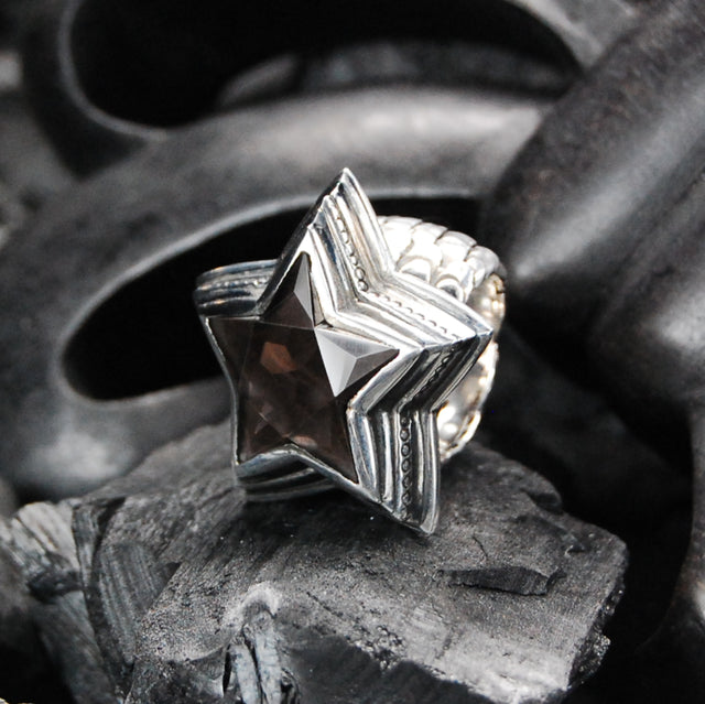 Wie der Name schon sagt, ist dieser atemberaubende Silberring ELFIN STAR L auf einem fantastischen Drachenschuppenband befestigt, was für ein Stück außergewöhnlichen Luxus sorgt. Mit Größe 58 und dem verführerischen rauchigen Quarzstein ist dies das letzte seiner Art.