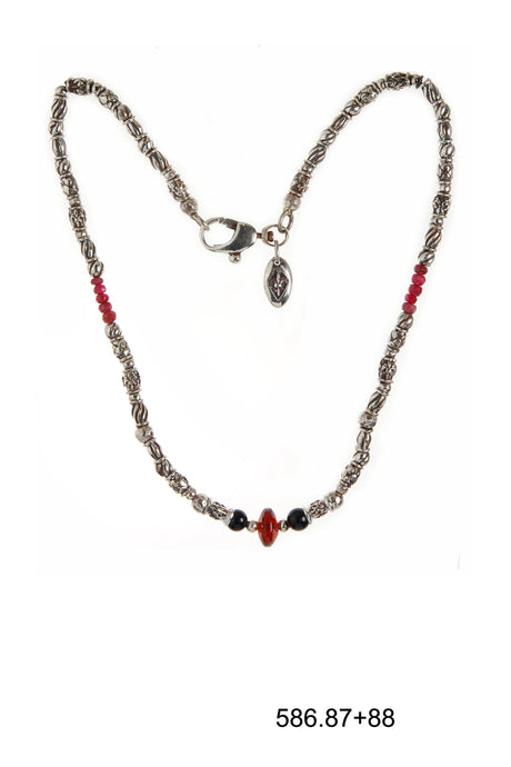 Halskette aus Perlen und facettierten silbernen BLADES CROSS Kugeln