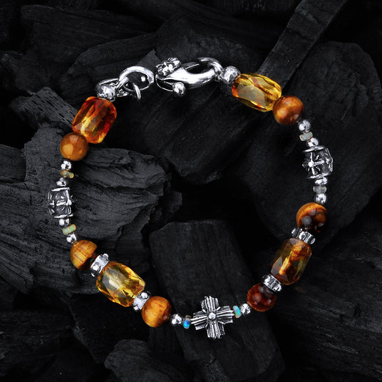 Silberarmband MORNING STAR CROSS und MOONSTONE ROCKS mit Perlen und Opalen