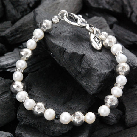 Silberarmband mit 8 mm großen Kreuzkugeln und echten Perlen