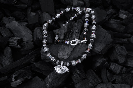 Bei Elfcraft zeigen sich Perlen von ihrer unangepassten Seite. Keine klassische Eleganz, sondern markanter Stil – kombiniert mit massiven Silberelementen, kraftvollen Symbolen und einer klaren Haltung.