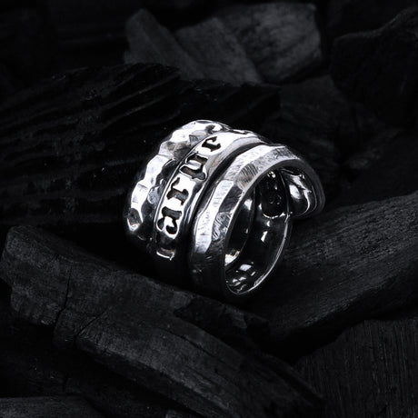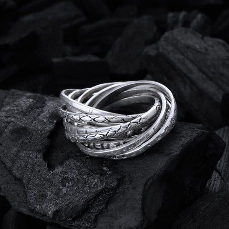 Ab €25900Grundpreis /Nicht verfügbarSilver Ring DRAGON FIRE Faceted Body Rivets Hammered Bands