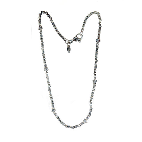 Silberne Halskette mit Mini-RÖHRCHEN und KUGELN Rough und Mini-STERNEN