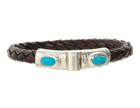 €27900€35900Grundpreis /Nicht verfügbarSilver Leather Bracelet Hammered Jointlock Oval Turquoise 7