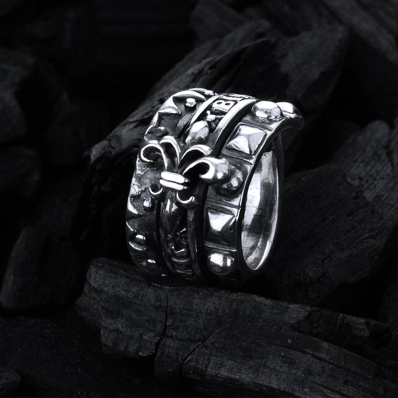€29800€39800Grundpreis /Nicht verfügbarSilver Ring GARDEN AT NIGHT with M-Stars Sides Band with DAGGER
