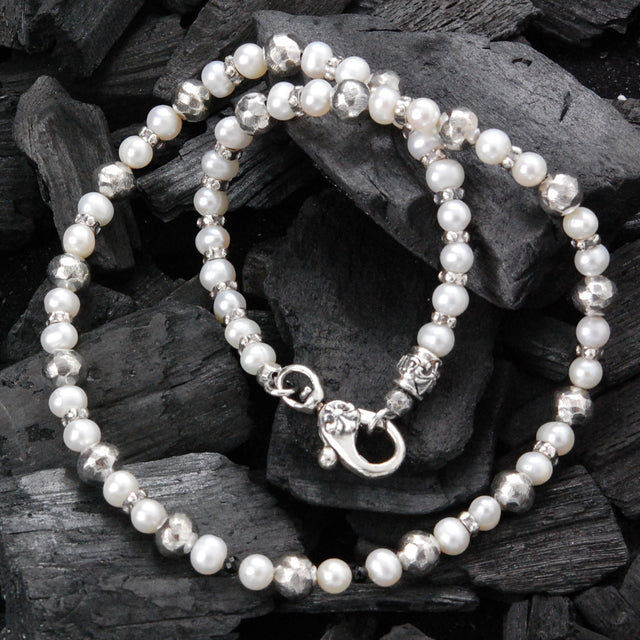 Silver and Pearls Choker with faceted Silver Balls+ PEARLS 5 Pearl